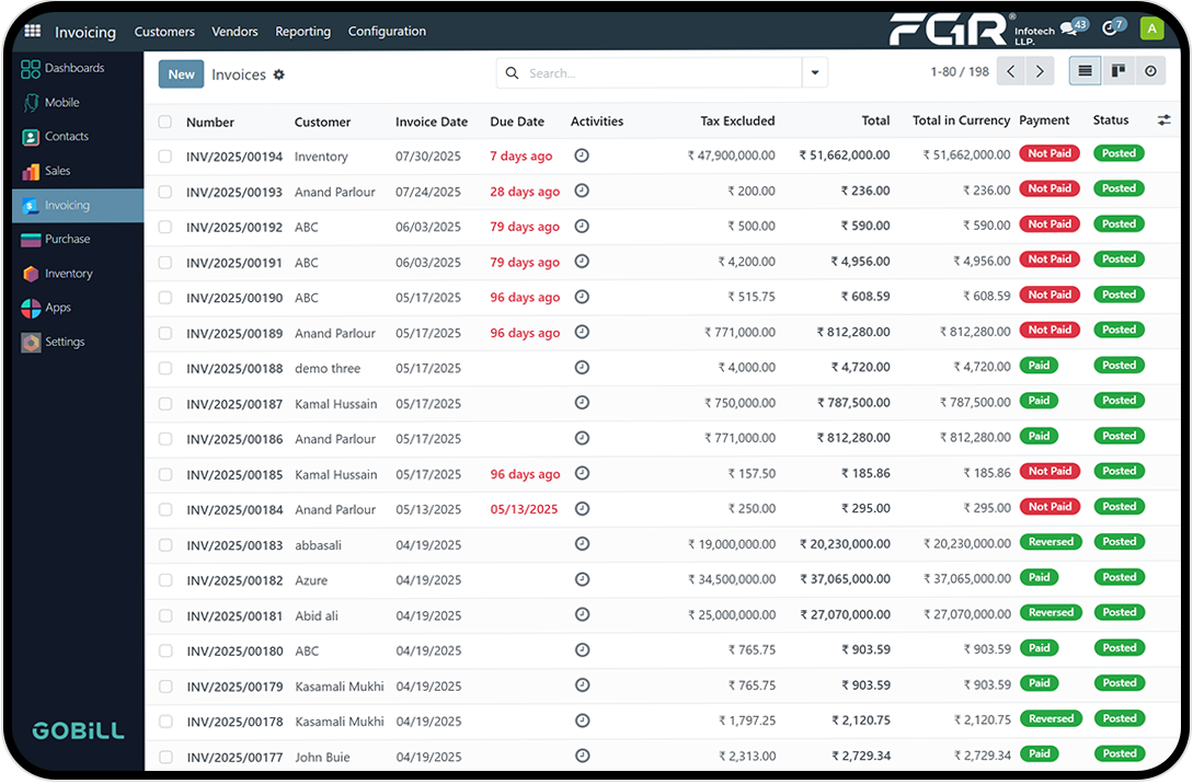 A business processing multiple daily transactions can use GoBill to generate accurate invoices, apply taxes and discounts, and share them instantly via email or print. The software helps track payment statuses, generate reports, and maintain clean, organized financial records — reducing manual work and improving efficiency.